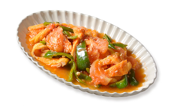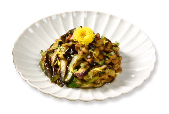 紹興酒、しょうゆ、黒砂糖を加えて少々炒めたら①を入れてさっと混ぜ炒める。火を止め、花椒粉を振る。