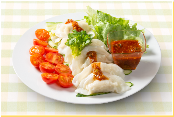 つるっともちもちした食感の皮にXO醤と蝦醤の味わい深い餡を包みました。特製ゆずポン酢につけて、お召しあがりください。