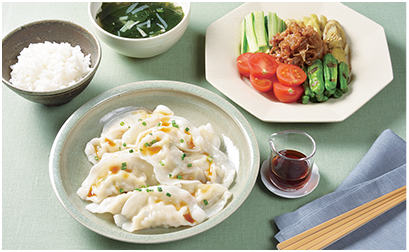 「水餃子」には、「豚肉と夏野菜のサラダ」