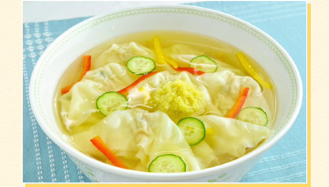すっきり澄んだ清湯スープが特長の海老入りワンタンです。