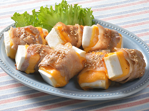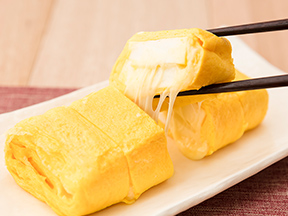 はんぺんにはさんだチーズが、とろけ出るだし巻き卵です。ふわふわはんぺんでボリュームたっぷりの一品です。はんぺんのとろーりチーズ入りだし巻き卵