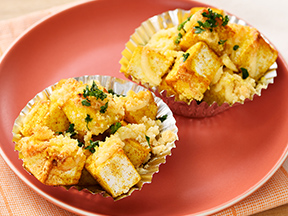 外はカリッ!中はふわっ!この楽しい食感は、焼いたはんぺんならでは。味付けはお弁当に鉄板のカレー&チーズ味で♪はんぺんのカレーチーズ焼き