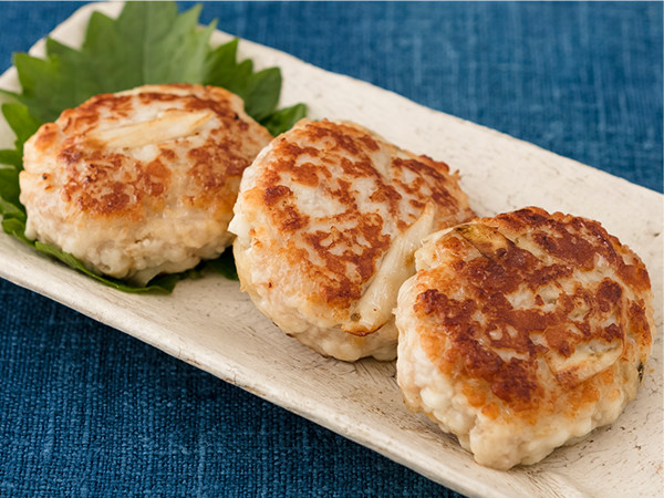 基本のはんぺん鶏団子に、みそとささがきごぼうを加えてこんがりと焼きます。ご飯のおかずにも、おつまみにも、お弁当にもおすすめです。