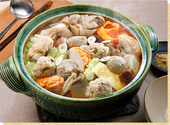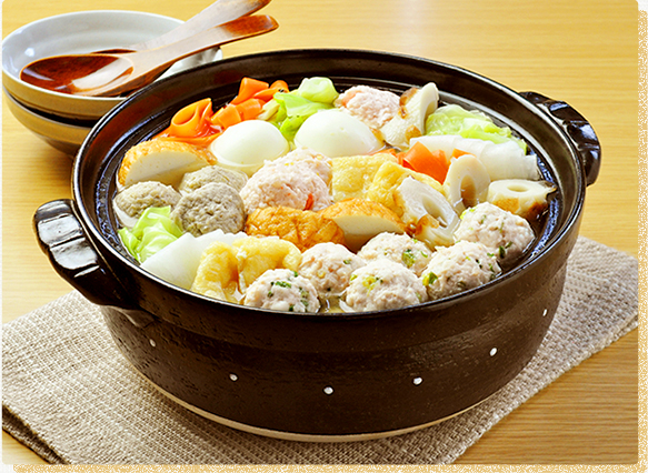 めんつゆと鶏がらスープのシンプルなだしで、本格的な風味に。「魚河岸あげ®」「ふわふわはんぺん鶏団子」にだしがよくしみ、際立ったおいしさに!