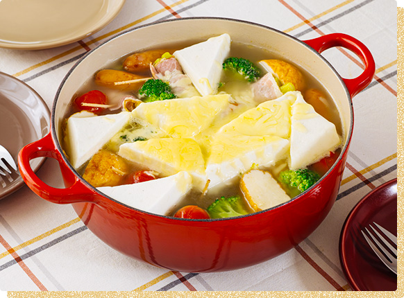 とろ~りチーズが具材に絡んで絶品! 魚河岸あげ®、はんぺんはチーズとの相性が抜群! 野菜がしっかり摂れます。