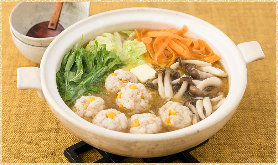 - 1.ふわふわはんぺん鶏団子にコーンを加えて、甘みと食感をプラス。