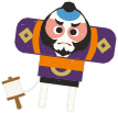 目かくしをして、顔の形だけがかかれた台紙に、まゆ毛・目・はな・口の形の紙をおいていくあそび。とんでもない顔ができてみんな大笑い。笑うのはおめでたいことだから、