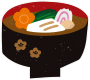 もち米をついた白もちは、とくべつな日にしか食べることができないたいせつな食べものだったんだよ。お正月に、もちや野菜、魚などを神さまにおそなえしたあと、それらを