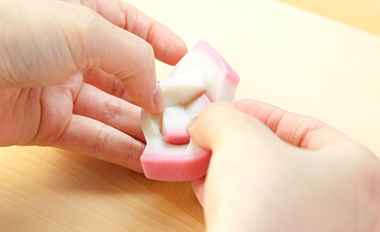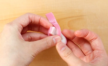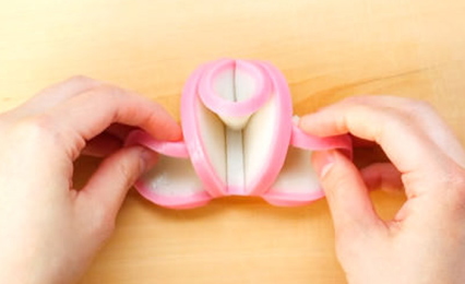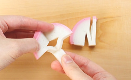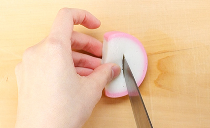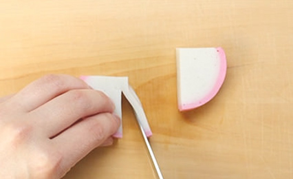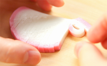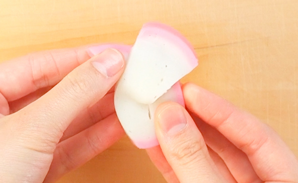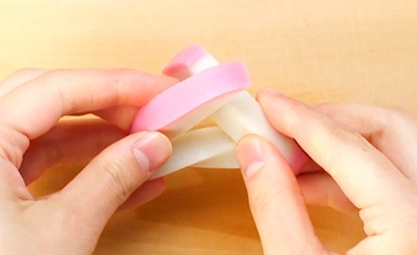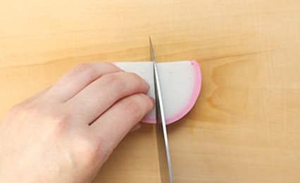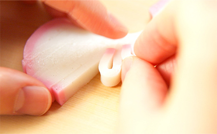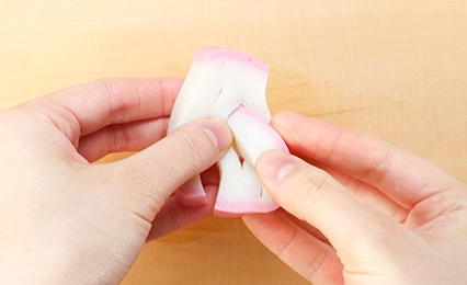 切り込みに蒲鉾の端を下から一回くぐらせる -