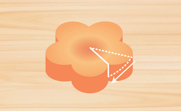 白い底面から、中心に向かい、切込をしっかりいれる -