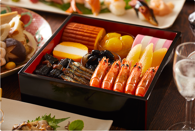 お重は、それだけで上質でお正月の気持ちを新たにさせてくれるような