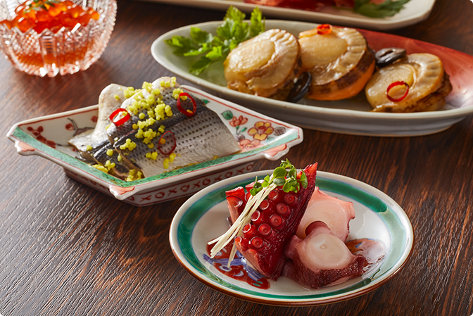 またおせちを皿盛りにするときは、ゆったりと盛りつけることで、整然と美しいおもてなしになります。