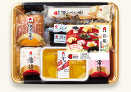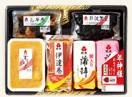 鯛入り蒲鉾(紅白)/伊達巻/栗きんとん/丹波黒豆/昆布巻
