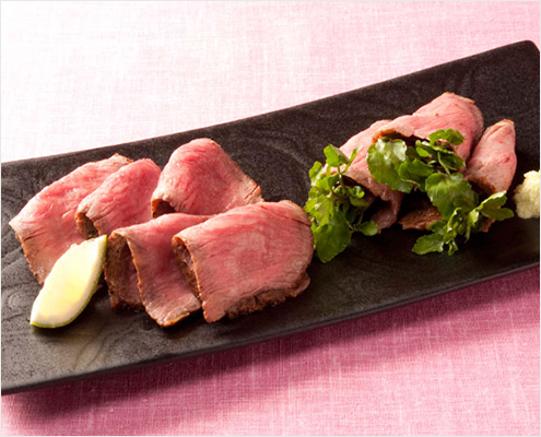 - 厚めのステーキ肉を、フライパンで蒸し焼きにして作るローストビーフです。豪華なローストビーフが手軽にできます。