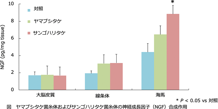 自然界に生息するキノコから分離した菌糸体の抗酸化活性および神経成長因子合成を測定した。20種類のキノコ菌糸体の中でサンゴハリタケの菌糸体は、高い抗酸化活性と神経成長因子合成作用を示した。