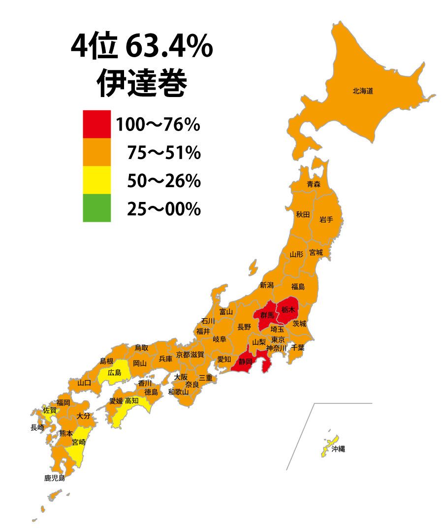 HOME > 知る > 紀文のお正月 > お正月に関するデータベース > おせち料理の県別用意率 2023年
