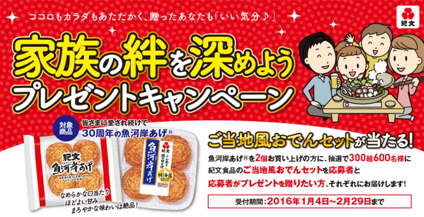 水産練り製品を主体としたチルド食品事業を中心に事業展開を行っている株式会社紀文食品(本社:東京都中央区)は、「魚河岸あげ®」の発売30周年を記念し、2016年1月4日より「魚河岸あげ®で家族の絆を深めよう」キャンペーンを展開しています。これにちなみ、紀文ではキャンペーンのプレゼント商品である「おでん」をテーマに、全国の20代~40代の女性400名を対象として、調査を行いました。