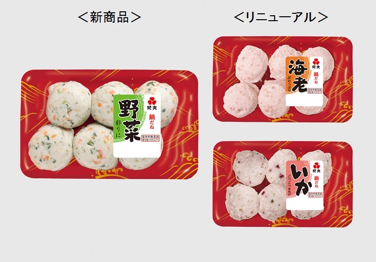 株式会社紀文食品では、8月31日(月)より東北地区~九州地区で、「鍋だね 野菜」を新発売、「鍋だね 海老」「鍋だね いか」をリニューアルします。
