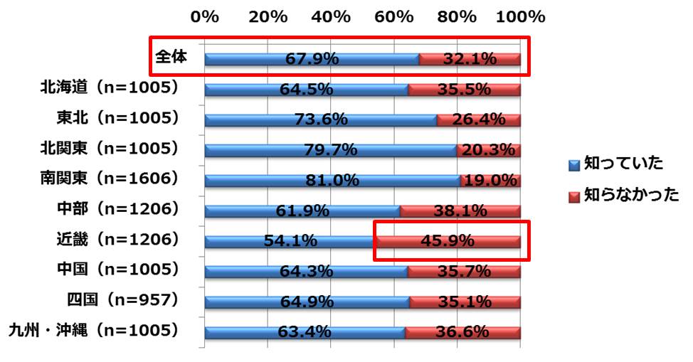 ⇒全体では、「知っていた」67.9%、「知らなかった」32.1%