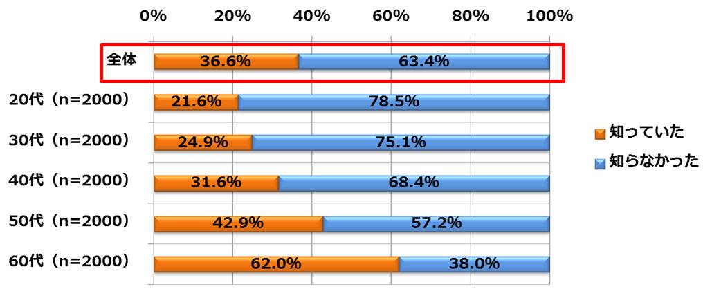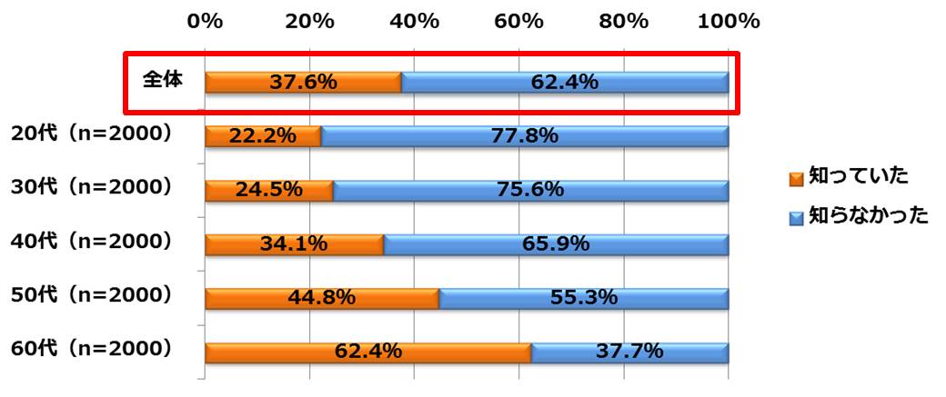 ⇒全体では、「知っていた」37.6% 「知らなかった」62.4%