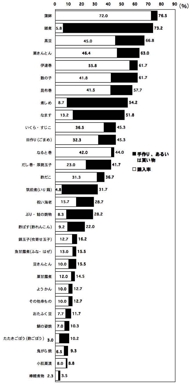 手作りから購入へ、市販品やお重詰めの購入は増加傾向