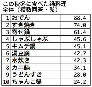この秋冬の喫食率No.1鍋料理は「おでん」88.4%
