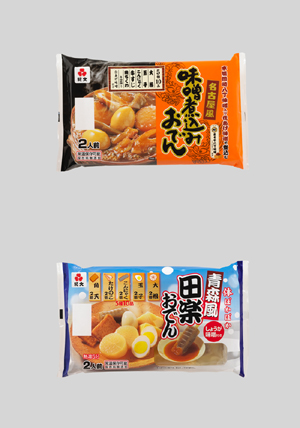 紀文では、本商品のほか、添付の生姜味噌をつけながらいただくレトルトパックおでん「青森風 田楽おでん」を発売。地方おでんシリーズとして、充実を図ってまいります。