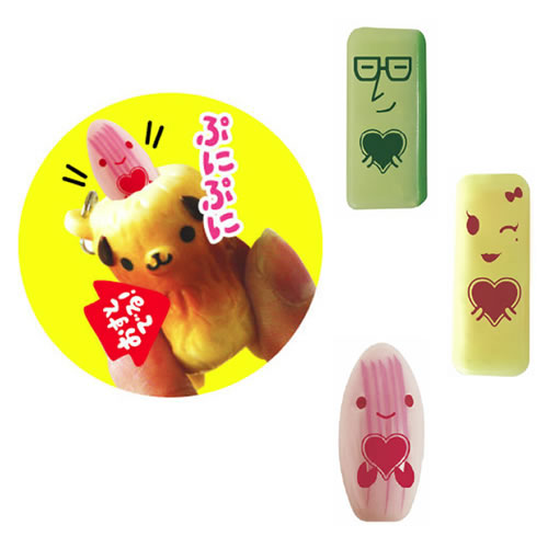 紀文オリジナルデザインの「はいりたまえ!ちくわくん!!受験生応援ストラップ」(全3 種)は、ぷにぷにとしたユニークな触感の竹輪の胴体を押すと、竹輪の穴の中に隠れている具材(キャラクター毎にキュウリ、チーズ、カニカマ)が飛び出す仕掛けになっています。具材には、各々のキャラクターのかわいらしい表情とともに、紀文食品のプロモーションマークであるハートフラワーをイメージしたハートマークが描かれています。