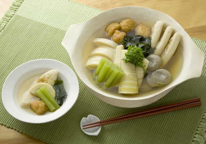 練り製品から出る旨味のあるコクと、筍とわかめの香りが調和した、春を感じさせる素材の味をお楽しみください。