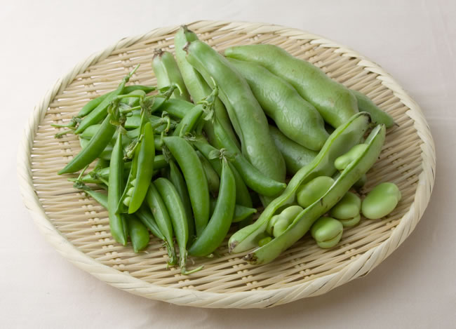 <今月の旬の食材 そら豆、スナップエンドウ>