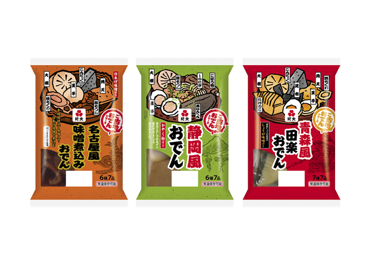 株式会社紀文食品(本社:東京都中央区銀座、社長:保芦 將人)では、ご当地おでん「名古屋風味噌煮込みおでん」「静岡風おでん」「青森風田楽おでん」を全国で8月22日(月)に発売します。