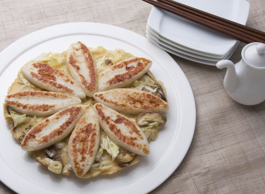 - 4:裏返して色良く焼きあげる。盛りつけて醤油かソースをお好みで添える。