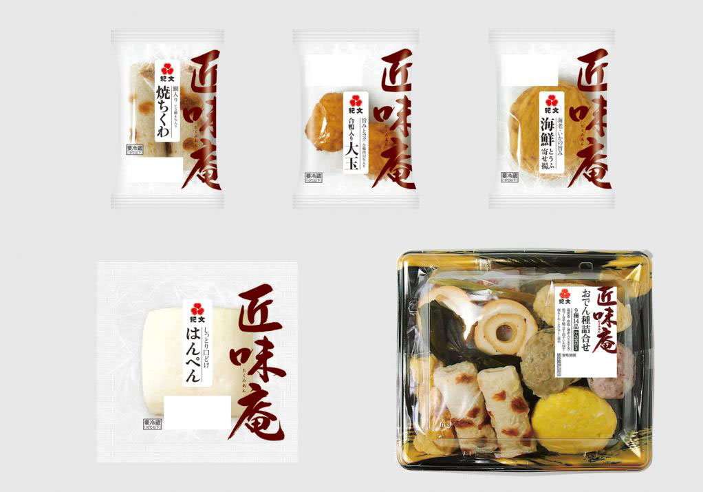 「匠味庵」シリーズは、おいしいおでん、旨みたっぷりのおでんを召しあがりたい方のためのおでん種。長年、おでんを作り続けてきた紀文の技が生きた、こだわりのおでん種です。