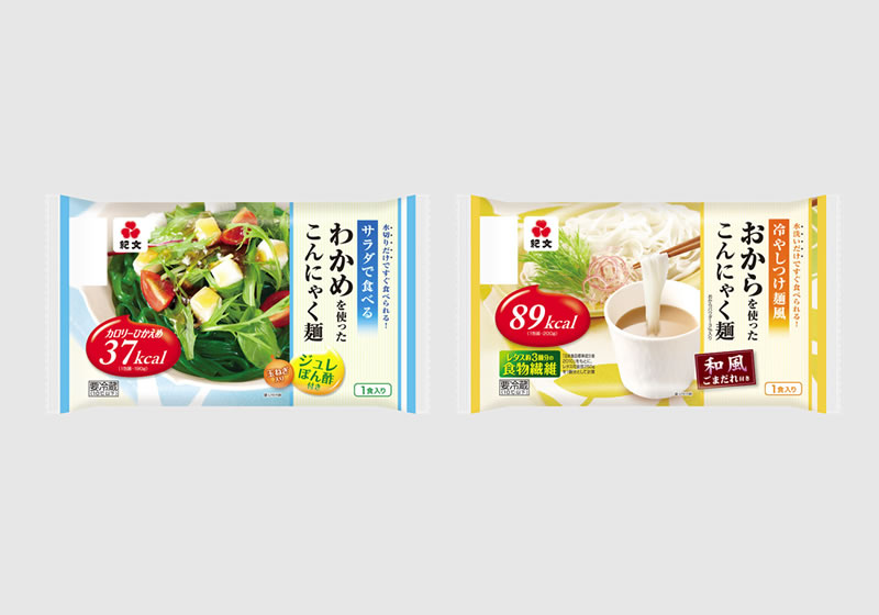 紀文、「わかめを使ったこんにゃく麺」「おからを使ったこんにゃく麺」をリニューアル