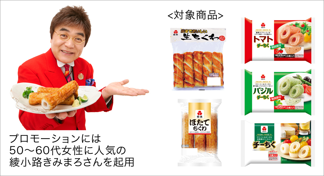 そこで、地域限定商品だった「皮までおいしい生ちくわ」の全国販売開始を受け、6~7月の潜在化した即食型練り製品需要を顕在化し、“質を重視”する消費者のニーズに応えるべく、「プレミアムなちくわ」とカテゴライズした商品をテーマに、プロモーションを実施いたします。