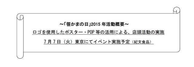 宮城県蒲鉾組合連合会と株式会社紀文食品では、2013年に、7月7日を「笹かまの日」と記念日制定いたしました。3年目を迎える本年は、消費者の皆さまへむけたダイレクトな情報提供による「笹かまの日」の認知向上を目指し、活動を実施して参ります。