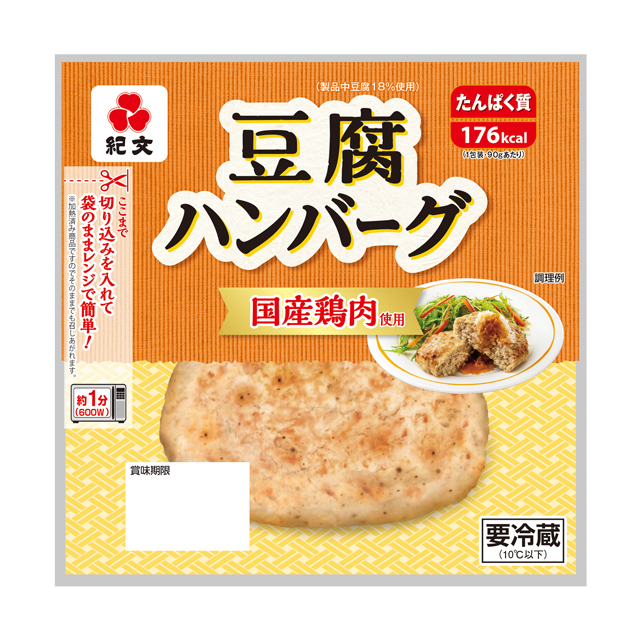 鶏肉(国産)、豆腐、玉ねぎ、鶏皮、豚脂、大豆たん白、パン粉、ぶどう糖、砂糖、食塩、香辛料、しょうゆ、酵母エキス、粉末卵白/加工でん粉、調味料(有機酸等)、(一部に卵・乳成分・小麦・大豆・鶏肉・豚肉を含む)