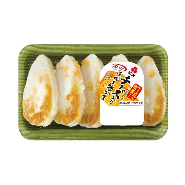 魚肉(たら(アメリカ)、いとより)、プロセスチーズ、でん粉、砂糖、発酵調味液、食塩、魚介エキス、還元水あめ、醸造調味料、ぶどう糖、植物油/調味料(有機酸等)、加工でん粉、乳化剤、V.C、セルロース、酸味料、貝Ca、着色料(カロチノイド)、(一部に乳成分・大豆を含む)