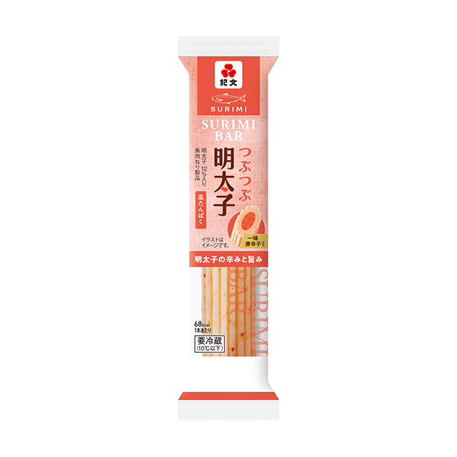 魚肉(アメリカ、日本)、明太子、でん粉、卵白、食塩、発酵調味液、植物性たん白、砂糖、唐辛子、調味液(醸造調味料、果糖ぶどう糖液糖、魚介エキス、唐辛子、食塩)、大豆油/ソルビット、調味料(アミノ酸等)、加工でん粉、甘味料(ソルビット)、酢酸Na、グリシン、着色料(トマト色素)、(一部に卵・大豆を含む)