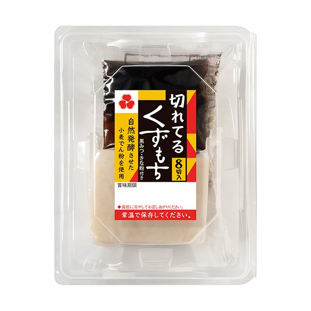 自然発酵させた小麦でん粉を使用した、カット済みのくずもちです。