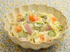 - 糖質0g麺とさけ水煮の冷製レモンパスタ風のレシピ