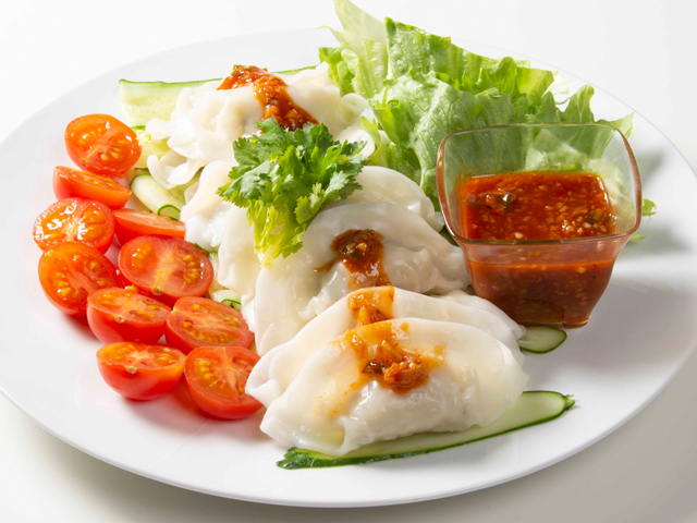料理研究家パンウェイさん監修レシピです。水餃子をサラダ仕立てにし、チリソースでいただくエスニック感覚の一品です。