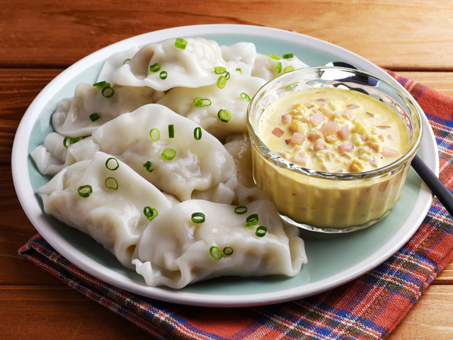 - 3鍋に湯を煮立て、水餃子を入れ3分ゆで、火を止めてざるなどで水けをきる。