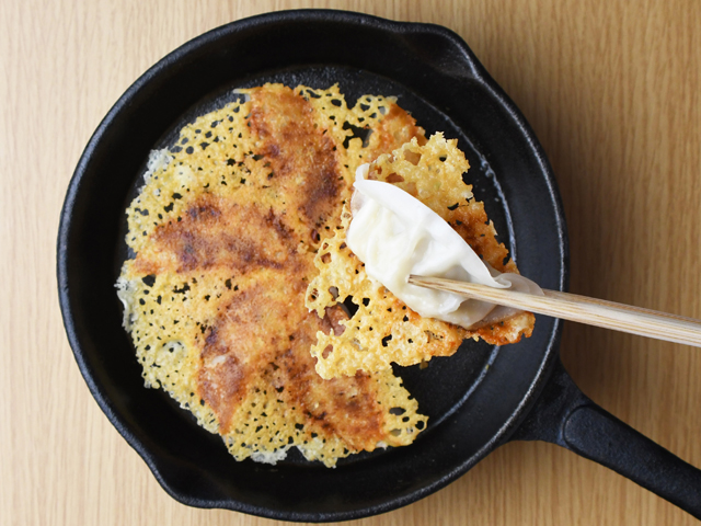 餃子12個で作る場合は、ピザ用チーズとサラダ油の量を倍量にし、内径26cmのフライパンで作ってください。