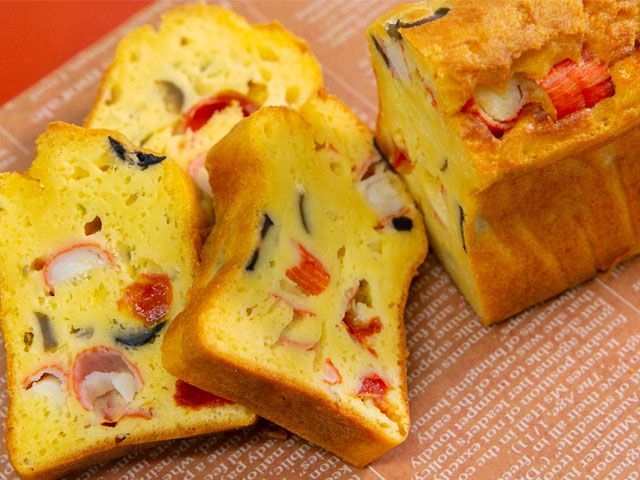 - 6クッキングシートを敷いた型に5を流し入れ、1のオーブンで30~40分焼く。取り出して粗熱を取り、食べやすい大きさに切る。