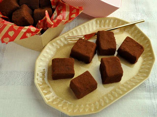 - 54をお好みの大きさに切り、ココアパウダー(分量外)をまぶす。